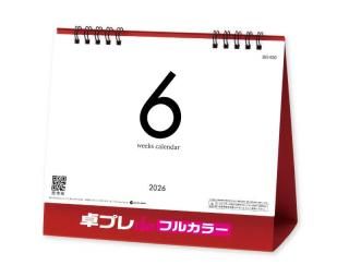 2026年 SG-930 6Weeks Calendar(レッド)【30部より既製品卓上カレンダーカラー名入れ印刷】【卓プレdeフルカラー】搭載
